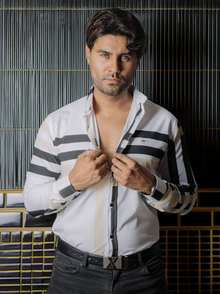 Camisa Hombre Casual Slim Fit Blanca Esfinges Letras