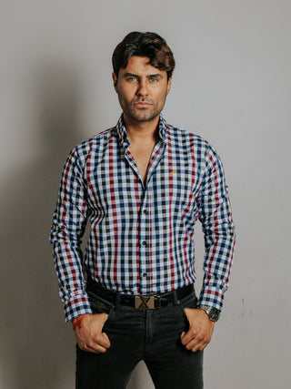 Camisa Hombre Casual Cuadro Azul Vino y Negro
