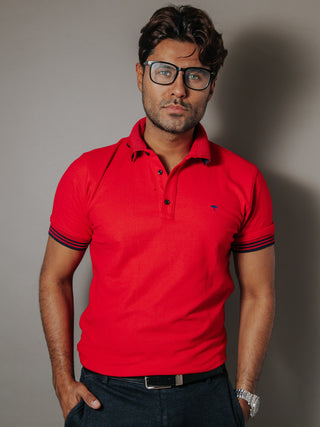 Playera Polo Hombre Slim Fit Rojo Detalle Azul Marino