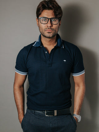 Playera Polo Hombre Slim Fit Azul Marino Detalle Blanco