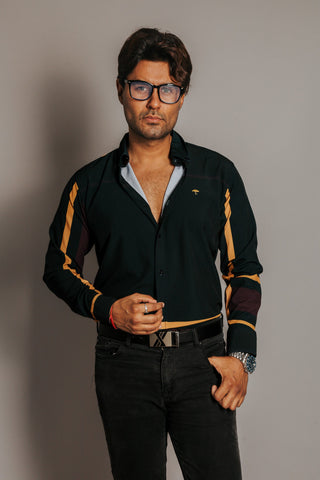 Camisa Hombre Casual Líneas Blanca Amarilla y Negra