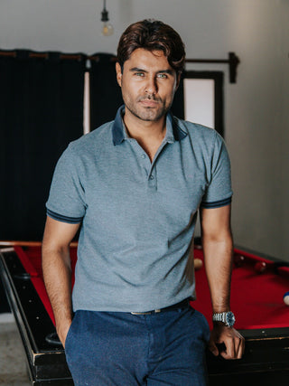 Playera Polo Hombre Slim Fit Azul Marino Detalle Gris