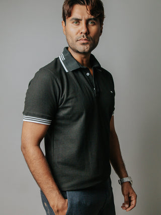 Playera Polo Hombre Slim Fit Negra Detalle Líneas Blancas
